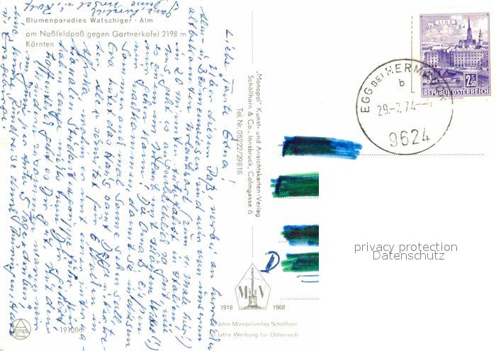 72626792 alte Postkarte Egg Hermagor Watschiger Alm am Nassfeldpass gegen Gartnerkofel Karnische Alpen postalisch gelaufen Erhaltung siehe scans [FriedD77] KatCode: 11390212020305