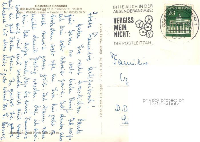 73522866 alte Postkarte Egg Riezlern Gaestehaus Sonnbuehl Alpen postalisch gelaufen Erhaltung siehe scans [FriedD77] KatCode: 11390