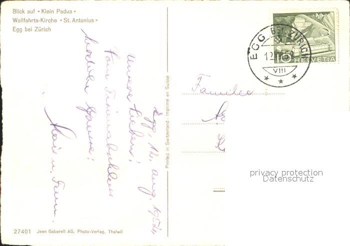 11635805 alte Postkarte Egg ZH Blick auf Klein Padua Wallfahrtskirche St. Antonius postalisch gelaufen Erhaltung siehe scans KatCode: 11470170475432
