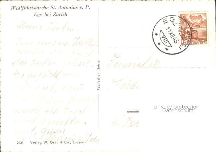 11635807 alte Postkarte Egg ZH Wallfahrtskirche St. Antonius von Padua postalisch gelaufen KatCode: 11470170475432