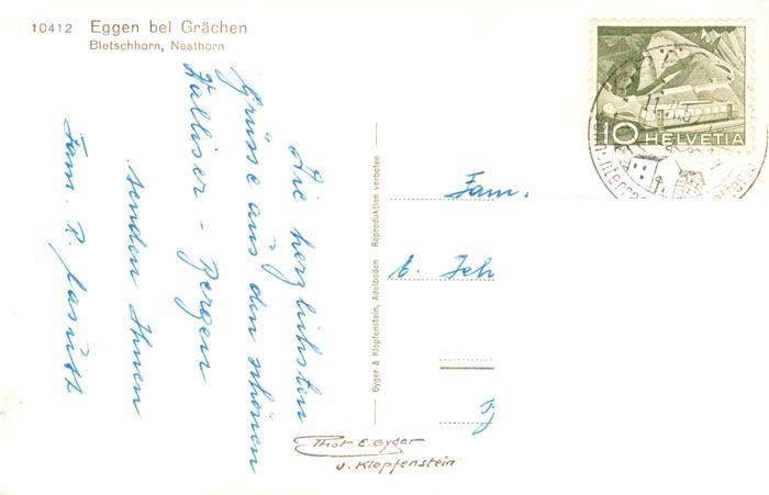 13931839 alte Postkarte Eggen Bellwald Graechen VS Panorama Blick gegen Bietschhorn Nesthorn Alpen postalisch gelaufen Erhaltung siehe scans [FriedD77] KatCode: 11470230705402