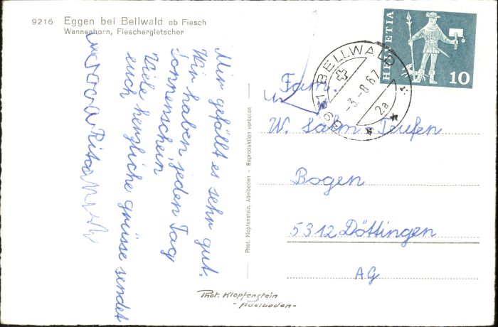 10724505 alte Postkarte Eggen Wannenhorn Fieschergletscher postalisch gelaufen KatCode: 11470360995222