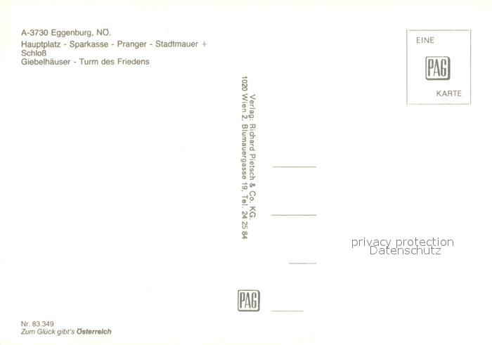 73628521 Eggenburg Niederoesterreich Hauptplatz Sparkasse Pranger Stadtmauer Schloss Giebelhaeuser Turm des Friedens postalisch nicht gelaufen Erhaltung siehe scans [WerneD78] KatCode: 11390124031105