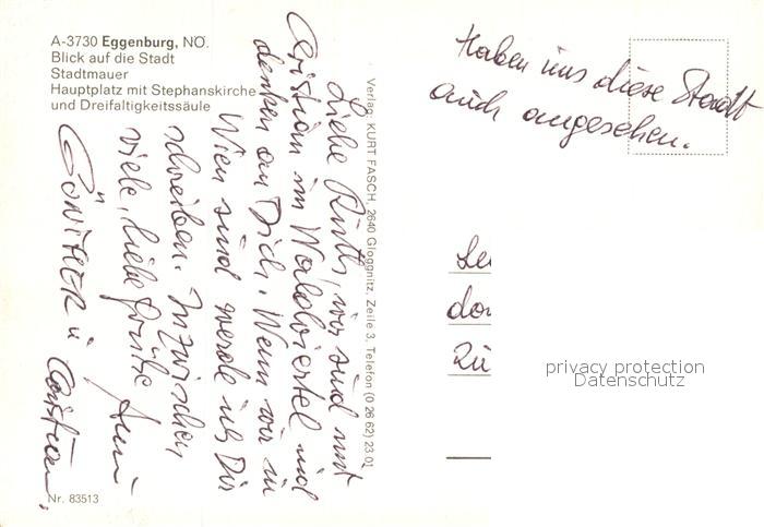 73481040 Eggenburg Niederoesterreich Stadtpanorama Stadtmauer Hauptplatz Stephanskirche Dreifaltigkeitssaeule postalisch nicht gelaufen Erhaltung siehe scans [FriedD77] KatCode: 11390124031105