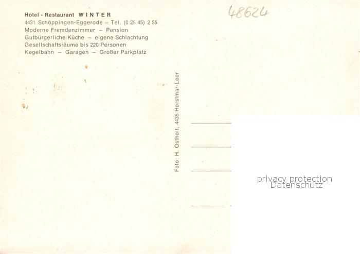 73866843 Eggerode Schoeppingen Hotel Restaurant Winter Kegelbahn postalisch nicht gelaufen Erhaltung siehe scans [FriedD77] KatCode: 11110005554052