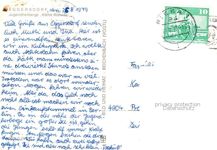 72928023 alte Postkarte Eggersdorf Schoenebeck Jugendherberge Kaethe Kollwitz postalisch gelaufen Erhaltung siehe scans [LiesaD40] KatCode: 11110015089080