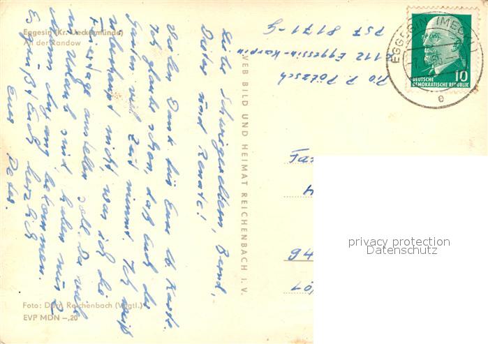 73334551 alte Postkarte Eggesin An der Randow postalisch gelaufen Erhaltung siehe scans [WerneD78] KatCode: 11110013062012