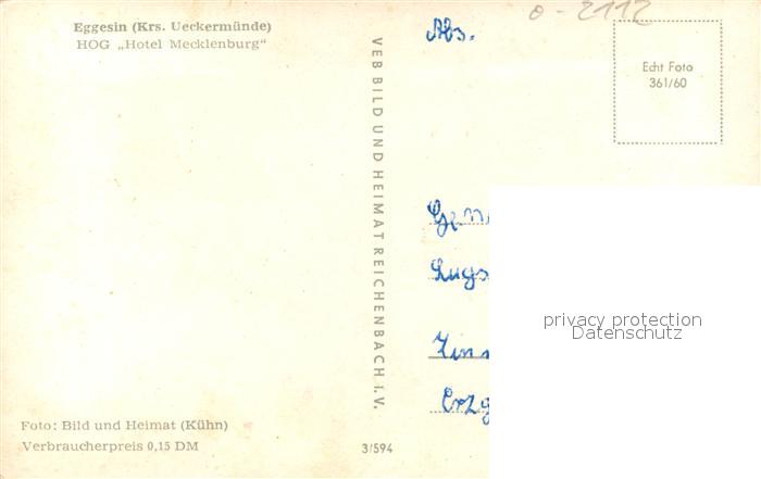 43498646 Eggesin HOG Hotel Mecklenburg postalisch nicht gelaufen Erhaltung siehe scans [LiesaD40] KatCode: 11110013062012
