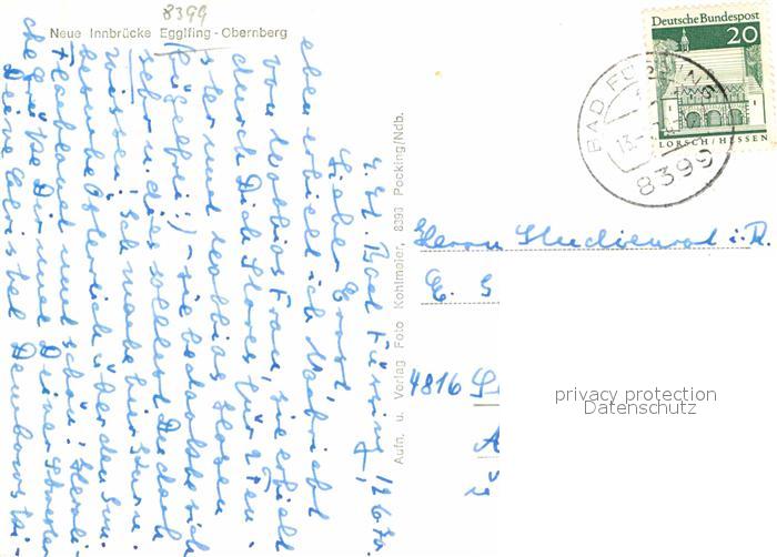 72798099 alte Postkarte Egglfing Inn Neue Innbruecke postalisch gelaufen Erhaltung siehe scans [AndreD76] KatCode: 11110009275116