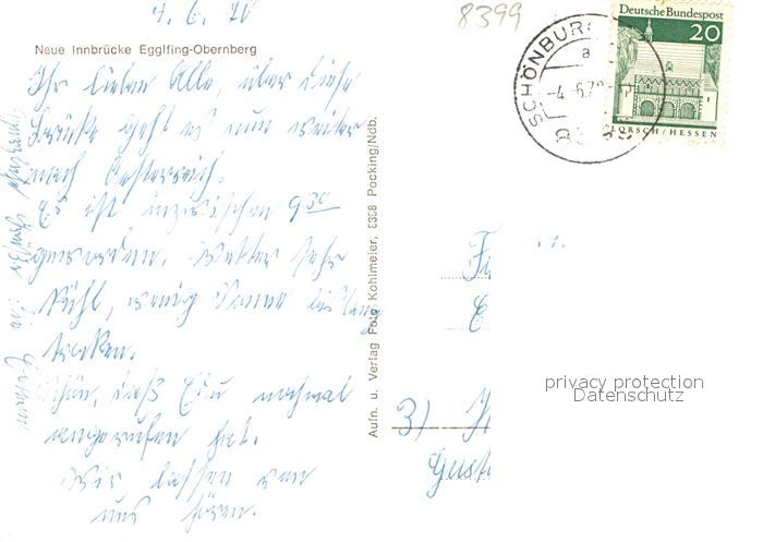 72982177 alte Postkarte Egglfing Inn Neue Innbruecke postalisch gelaufen Erhaltung siehe scans [WerneD78] KatCode: 11110009275116