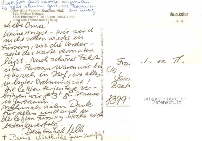 72900294 Egglfing Inn Restaurant Pension Egglfinger Hof postalisch nicht gelaufen Erhaltung siehe scans [LiesaD40] KatCode: 11110009275116