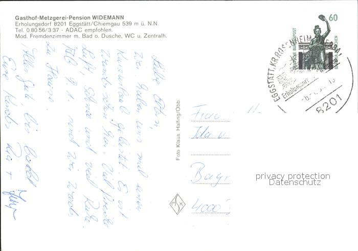 72276940 alte Postkarte Eggstaett Oberbayern Gasthaus Metzgerei Pension Widemann postalisch gelaufen Erhaltung siehe scans KatCode: 11110009187125