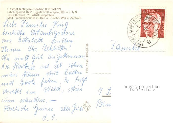 73835659 alte Postkarte Eggstaett Oberbayern Gasthof Metzgerei Pension Widemann Gaststube Panorama Anlegesteg postalisch gelaufen Erhaltung siehe scans [WerneD78] KatCode: 11110009187125