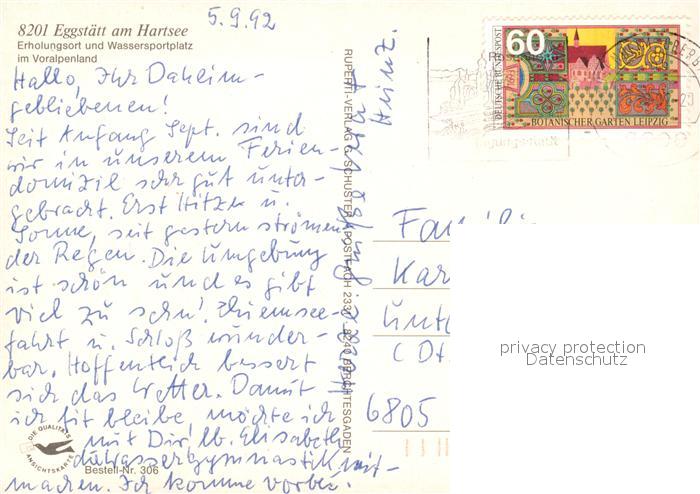 73070476 alte Postkarte Eggstaett Oberbayern Panorama Erholungsort Voralpenland mit Hochplatte Kampenwand Chiemgauer Alpen postalisch gelaufen Erhaltung siehe scans [FriedD77] KatCode: 11110009187125