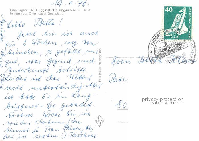 72905421 alte Postkarte Eggstaett Oberbayern postalisch gelaufen Erhaltung siehe scans [NatalD47] KatCode: 11110009187125