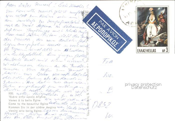old postcard Egina Aegina Hafen Fischerboot Tempel Ruine Antike Strand postalisch gelaufen Erhaltung siehe scans
