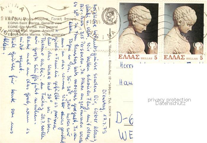 old postcard Egina Aegina Santa Marina Kuestenpartie postalisch gelaufen Erhaltung siehe scans [LiesaD40]