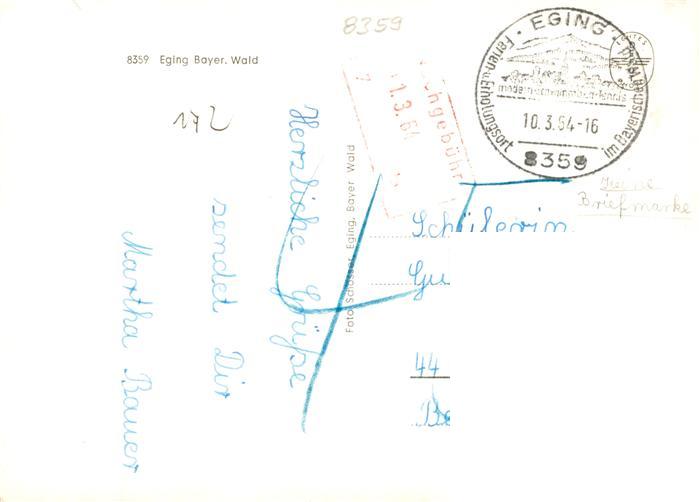73878530 alte Postkarte Eging See Bayerischer Wald Panorama Ortsansicht mit Kirche Freibad postalisch gelaufen Erhaltung siehe scans [FriedD77] KatCode: 11110009275120
