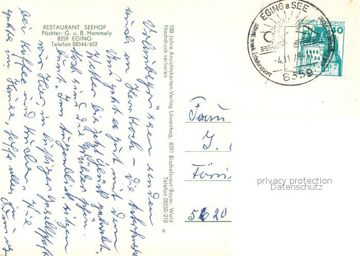 73651371 alte Postkarte Eging See Restaurant Seehof Terrasse Gastraum Panorama postalisch gelaufen Erhaltung siehe scans [WerneD78] KatCode: 11110009275120