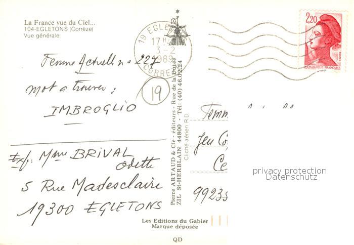 13161933 carte postale Egletons Fliegeraufnahme postalisch gelaufen Erhaltung siehe scans [KathaD81] KatCode: 11170019219073