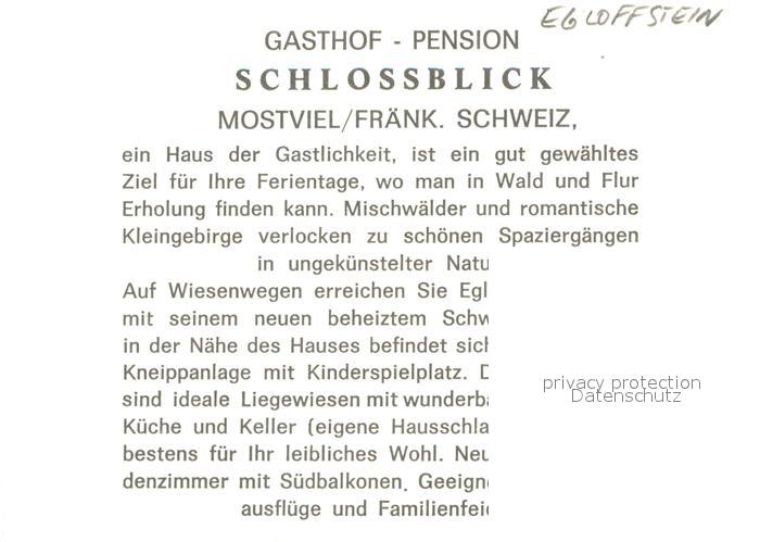 73732184 Egloffstein Gasthof-Pension Schlossblick Aussenansicht postalisch nicht gelaufen Werbekarte (keine Postkarte) Erhaltung siehe scans [LiesaD40] KatCode: 11110009474124