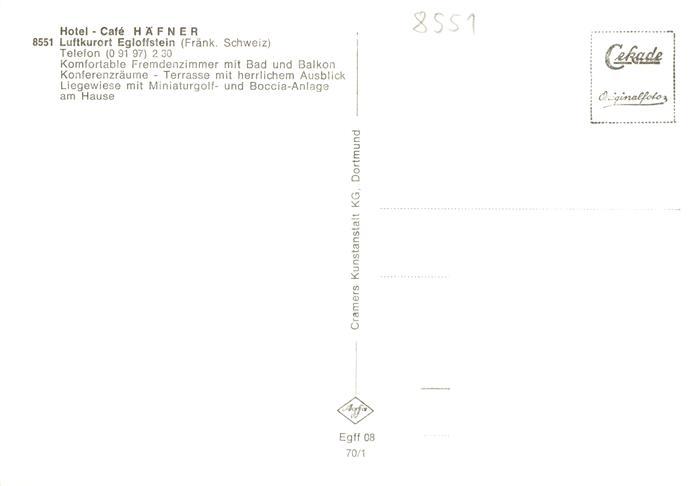73893182 Egloffstein Hotel Cafe Haefner postalisch nicht gelaufen Erhaltung siehe scans [WerneD78] KatCode: 11110009474124