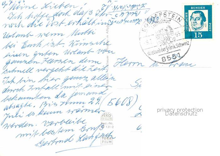 72688766 alte Postkarte Egloffstein Luftkurort in der Fraenkischen Schweiz postalisch gelaufen Erhaltung siehe scans [FriedD77] KatCode: 11110009474124