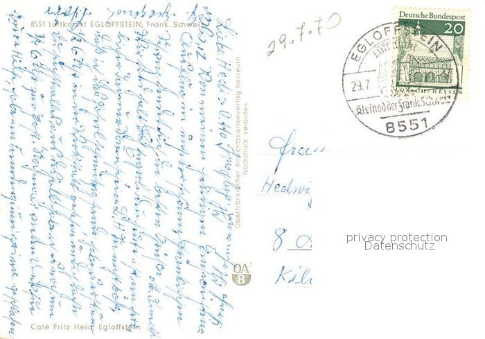 73073937 alte Postkarte Egloffstein Teilansicht postalisch gelaufen Erhaltung siehe scans [WerneD78] KatCode: 11110009474124