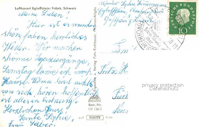 72884396 alte Postkarte Egloffstein postalisch gelaufen Erhaltung siehe scans [PaolaD17] KatCode: 11110009474124