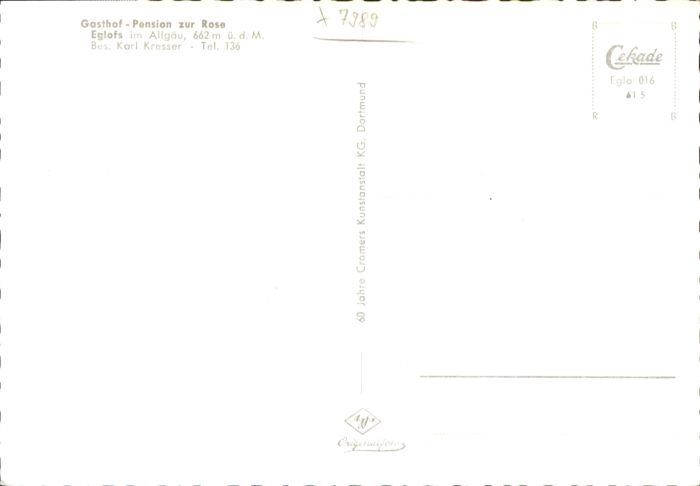 40897980 Eglofs Gasthof Pension zur Rose postalisch nicht gelaufen KatCode: