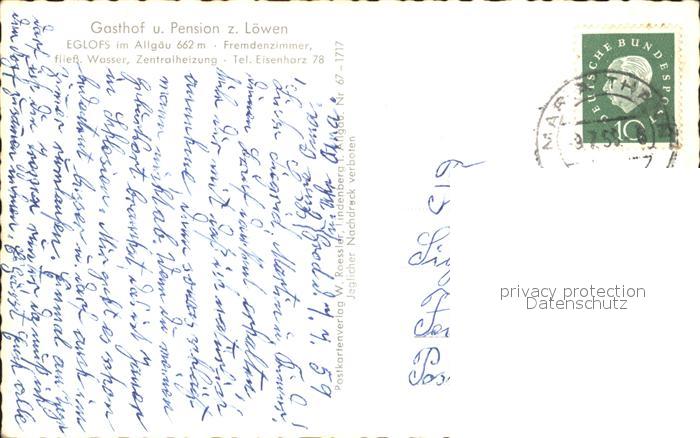 72040333 alte Postkarte Eglofs Woringen Gasthof-Pension Zum Loewen postalisch gelaufen Erhaltung siehe scans KatCode: 11110009778219