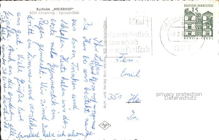 72072379 alte Postkarte Eglsee Chieming Kurheim Moierhof postalisch gelaufen Erhaltung siehe scans KatCode: 11110009189114