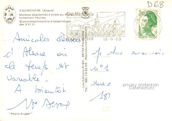 carte postale Eguisheim Haut Rhin Maisons alsaciennes a oriels du XVIe siècle postalisch gelaufen Erhaltung siehe scans [FriedD77]