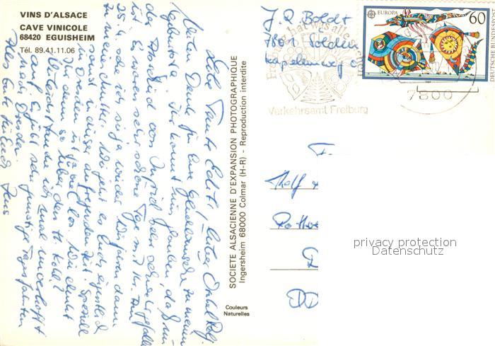 13062760 carte postale Eguisheim Haut Rhin Vins D Alsace postalisch gelaufen Erhaltung siehe scans [KathaD81] KatCode: 11170068268078