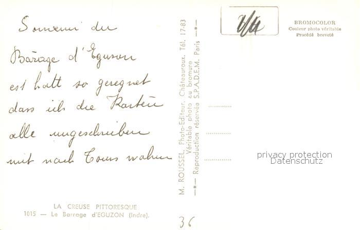 13503483 Eguzon-Chantome Barrage postalisch nicht gelaufen Erhaltung siehe scans [LiesaD40] KatCode: 11170036336070