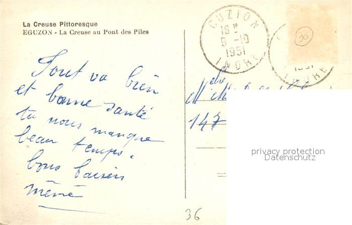 13502157 carte postale Eguzon-Chantome La Creuse au Pont des Piles postalisch gelaufen Erhaltung siehe scans [LiesaD40] KatCode: 11170036336070