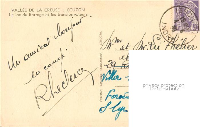 13523336 carte postale Eguzon-Chantome Vallee de la Creuse Lac du Barrage et les transformateurs postalisch gelaufen Erhaltung siehe scans [FriedD77] KatCode: 11170036336070