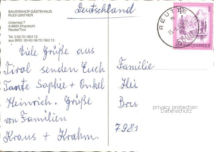 72181178 alte Postkarte Ehenbichl Bauernhof Gaestehaus Rudi Ginther postalisch gelaufen Erhaltung siehe scans KatCode: 11390331070806