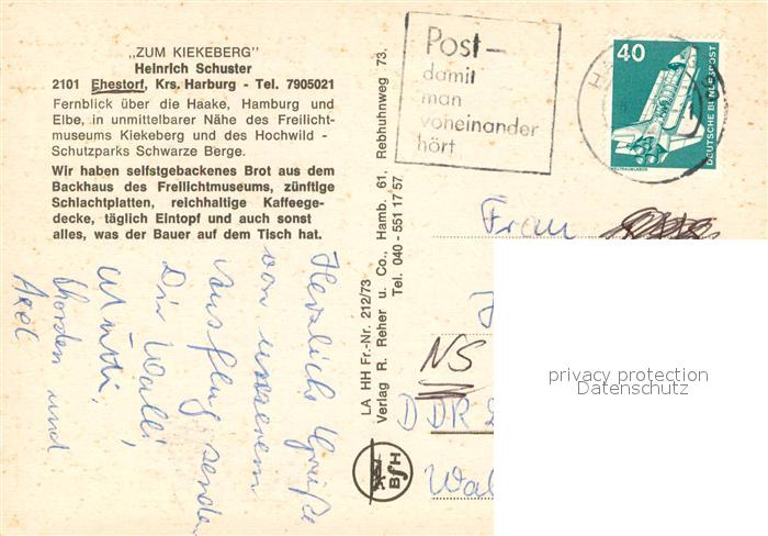 73647980 alte Postkarte Ehestorf Harburg Zum Kiekeberg Freilichtmuseum Fliegeraufnahme postalisch gelaufen Erhaltung siehe scans [WerneD78] KatCode: 11110003353029