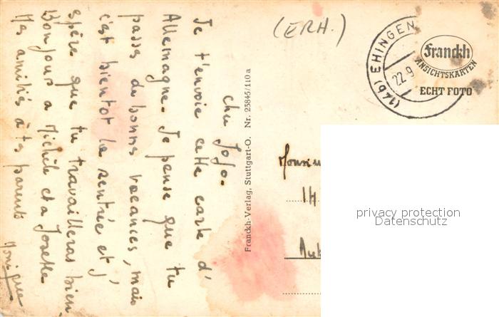 73675390 alte Postkarte Ehingen Donau Kriegerdenkmal Schwanenteich postalisch gelaufen Erhaltung siehe scans [FriedD77] KatCode: 11110008425033