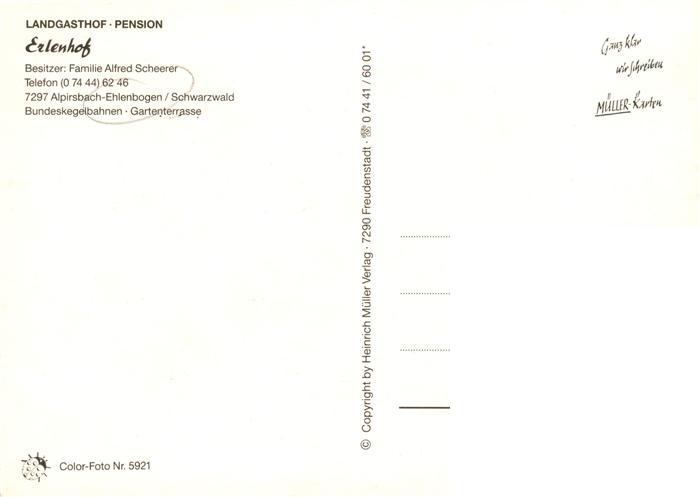 73885934 Ehlenbogen Alpirsbach Landgasthof Pension Erlenhof postalisch nicht gelaufen Erhaltung siehe scans [WerneD78] KatCode: 11110008237002