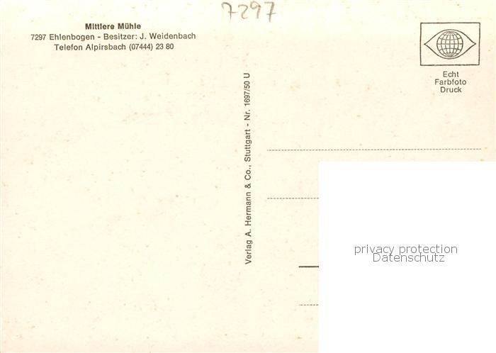 73871073 Ehlenbogen Alpirsbach Mittlere Muehle postalisch nicht gelaufen Erhaltung siehe scans [WerneD78] KatCode: 11110008237002