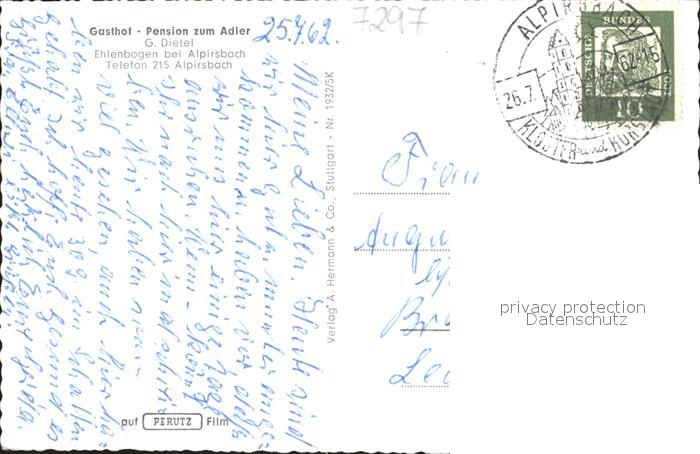 72144089 alte Postkarte Ehlenbogen Gasthof Pension Zum Adler Speisesaal postalisch gelaufen Erhaltung siehe scans KatCode: 11110008237002