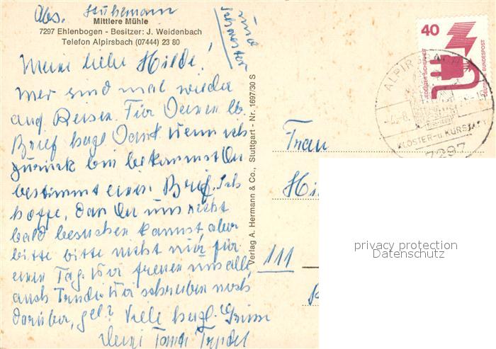 73724477 alte Postkarte Ehlenbogen Mittlere Muehle postalisch gelaufen Erhaltung siehe scans [WerneD78] KatCode: 11110008237002