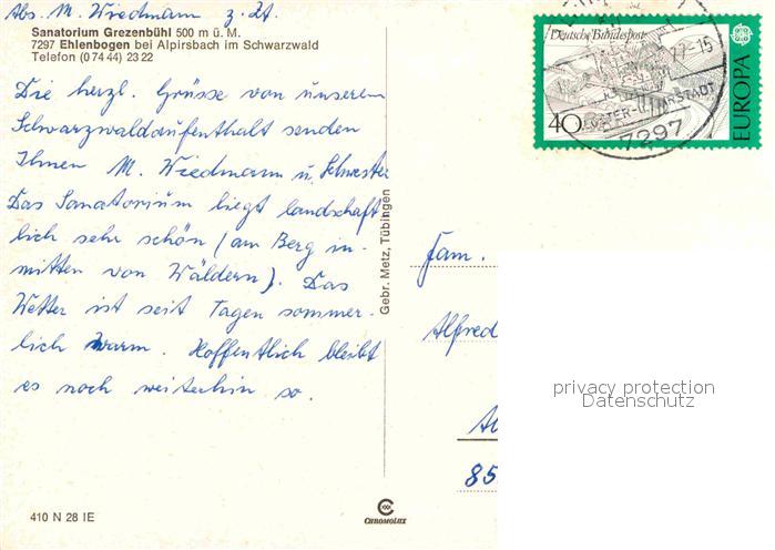 72716660 alte Postkarte Ehlenbogen Sanatorium Grezenbuehl postalisch gelaufen Erhaltung siehe scans [LiesaD40] KatCode: 11110008237002