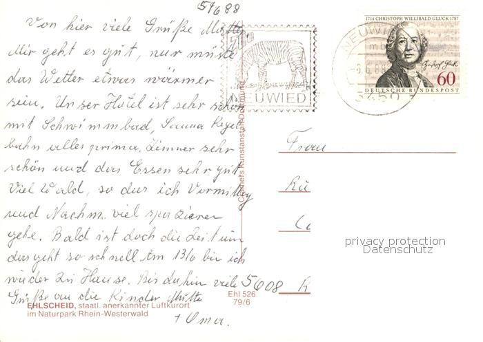 73073974 alte Postkarte Ehlscheid Elisabeth Hoehe Almblick Waldschwimmbad Kaisereiche Kurpark postalisch gelaufen Erhaltung siehe scans [WerneD78] KatCode: 11110007138015