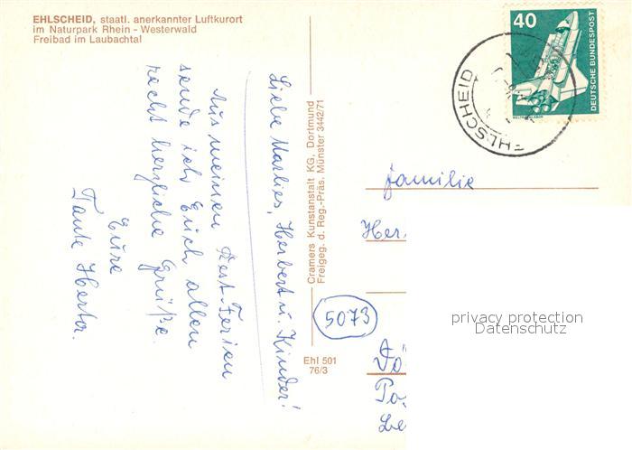 73030284 alte Postkarte Ehlscheid Fliegeraufnahme mit Freibad im Laubachtal postalisch gelaufen Erhaltung siehe scans [WerneD78] KatCode: 11110007138015