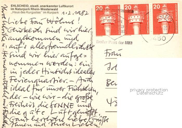 73324383 alte Postkarte Ehlscheid Haus des Kurgastes Kurpark Naturpark Rhein Westerwald postalisch gelaufen Erhaltung siehe scans [FriedD77] KatCode: 11110007138015