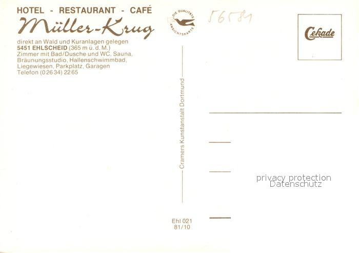73569304 Ehlscheid Hotel-Restaurant M?ller-Krug postalisch nicht gelaufen Erhaltung siehe scans [PaolaD17] KatCode: 11110007138015