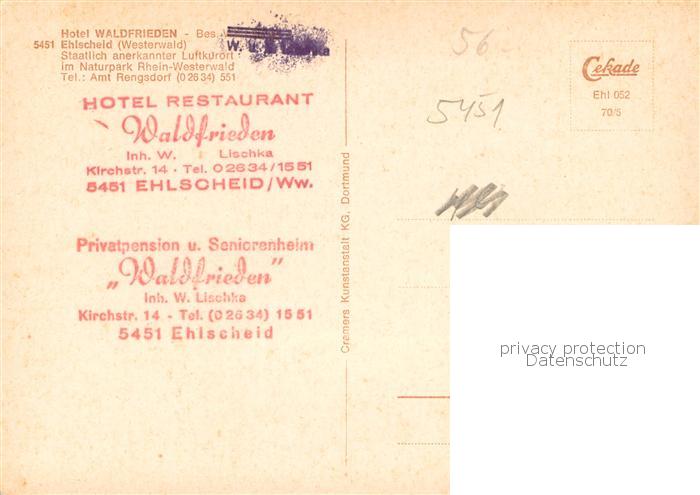 73758272 Ehlscheid Hotel Restaurant Waldfrieden postalisch nicht gelaufen Erhaltung siehe scans [FriedD77] KatCode: 11110007138015